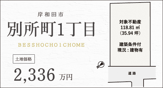 南海本線「岸和田」駅 徒歩約5分 土地118.81㎡(35.94坪) 建築条件付売土地...